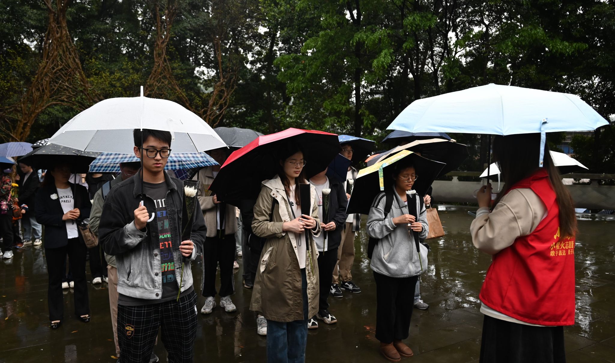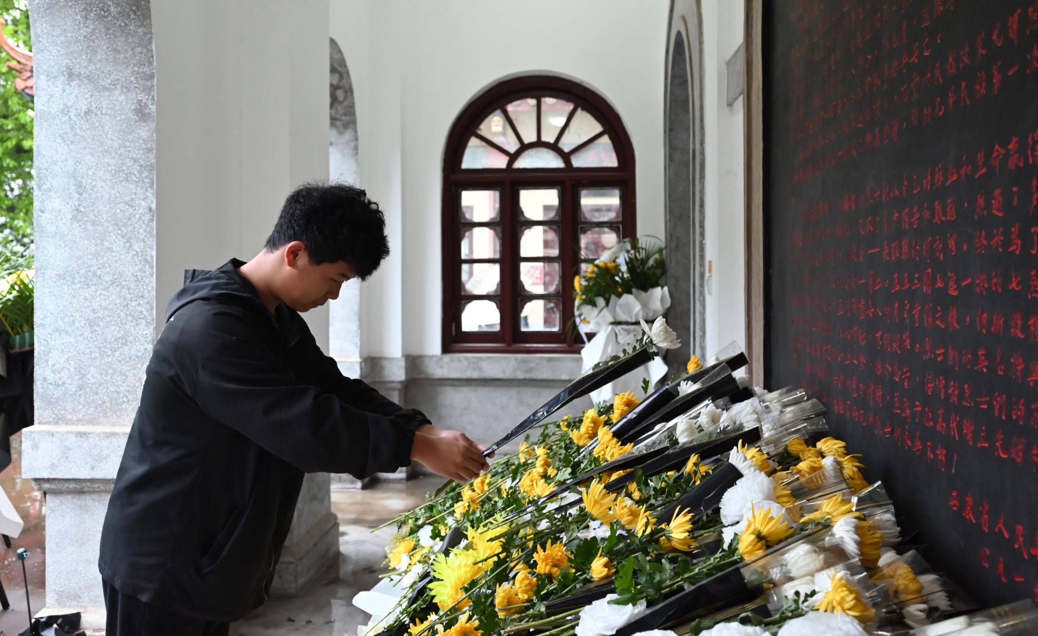 在工作人员的带领下,大家怀着崇高的敬意,为人民英雄致敬默哀一分钟,并有序排队敬献鲜花。