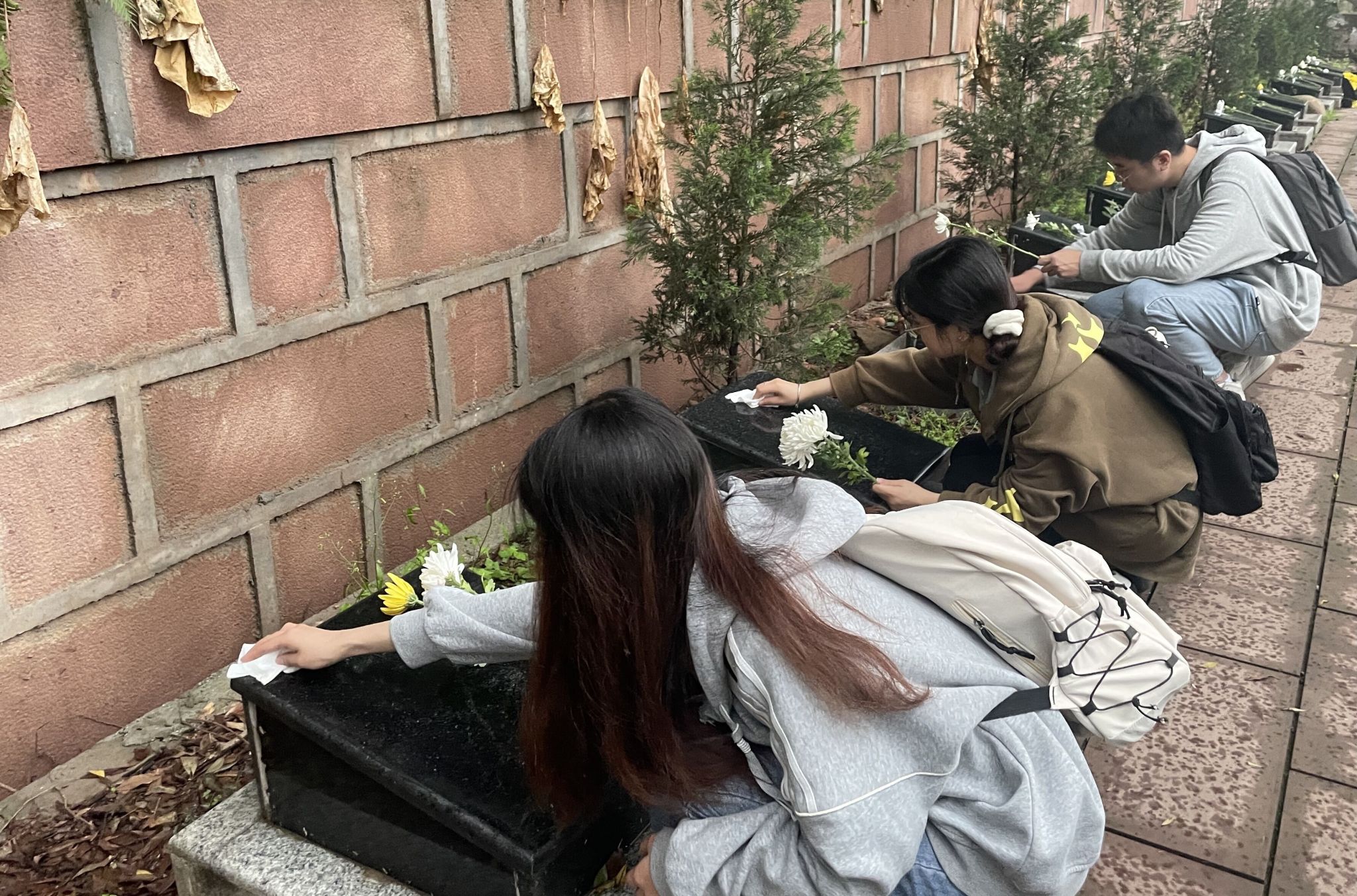 参加活动的全体党员和入党积极分子分组进行清明祭扫。大家来到每一座烈士墓碑前,清理周围的杂草,擦拭墓碑上的灰尘,敬献一束鲜花,以此缅怀先烈,表达追思。