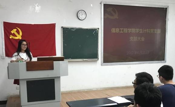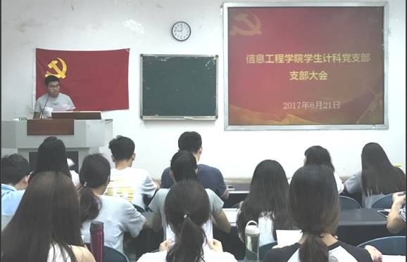 6月21日中午,信息工程学院学生计科党支部在10-B210召开了第二次支部大会。会议主要讨论支部建设包括基层党建创新、支部纪律制度建设等内容。党支部书记邓秋红及学生计科党支部全体党员参会。会议由学生支部副书记张家柠主持。