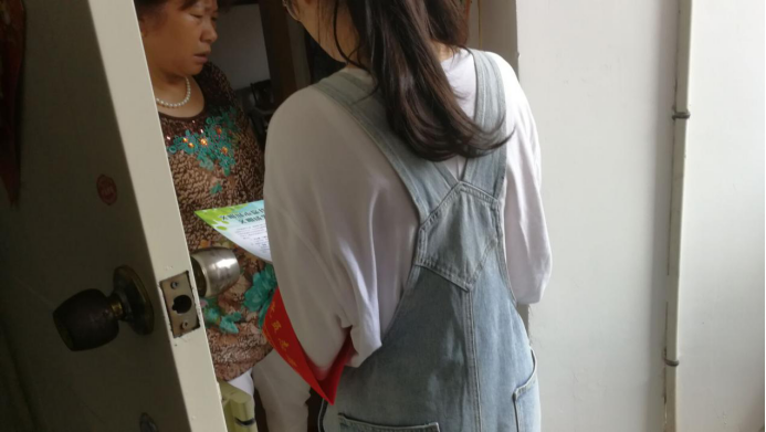 下午14:20,志愿者按照预先的通知,在西大街社区集合,由王媛同学带队,在西大街社区工作人员的带领下,志愿者开始在西大街社区下属街道进行走访。