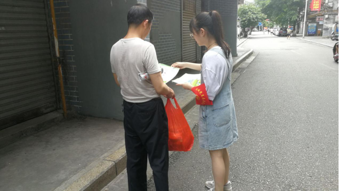 志愿者在进行街头宣传
