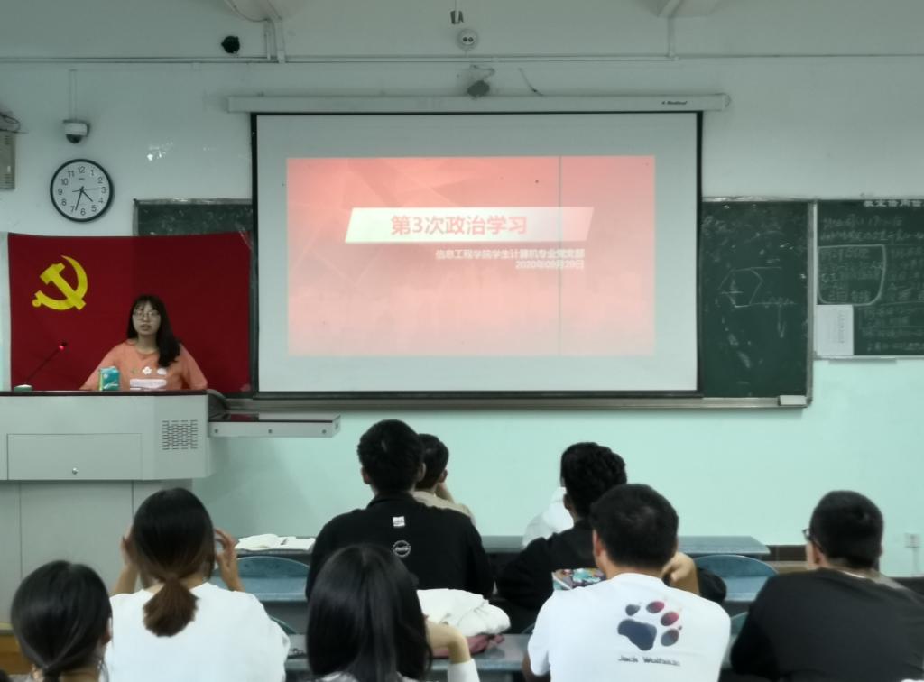 2020年9月29日下午4:20,信息工程学院计算机科学与技术学生党支部于第十教学楼A211组织召开了本学期第三次政治学习分享会,此次学习会议主题为厉行勤俭节约,反对铺张浪费,由雷欣、骆科梅同志主持召开。支部预备党员积极参与,学习氛围浓厚。