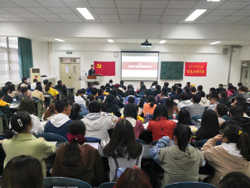 10月13日下午,信息工程学院入党积极分子培训班第四次专题培训在十教B203举行,学院副院长李军老师就《中国共产党的优良传统和作风》等内容进行专题讲解,信息工程学院2020年全体入党积极分子参加本次培训。