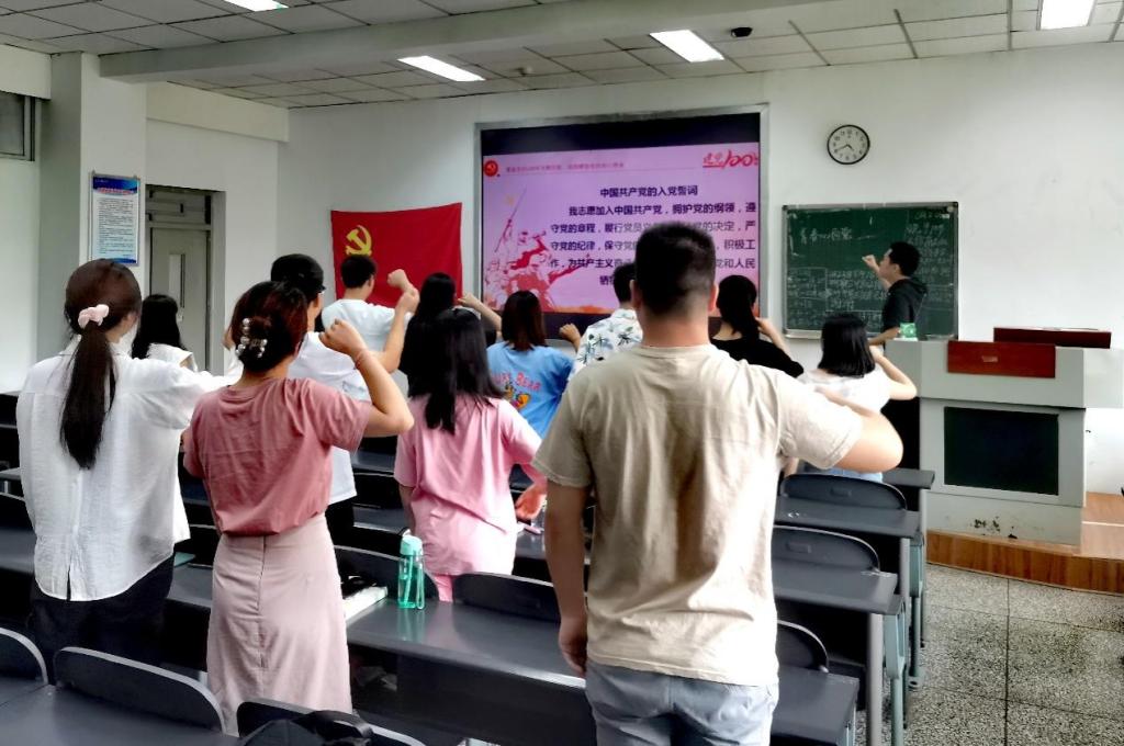 大会第一项,重温入党誓词,由支部书记向建桦同志领誓,全体参会成员面向党旗庄严宣誓。大会第二项,向建桦老师围绕“社会主义发展史”及“改革开放史”专题学习进行讲解,重温了党的百年光辉历程,深刻感悟党的初心使命。通过对辛亥革命、五四运动、抗日战争、解放战争、新中国成立、社会主义探索、改革开放到现代化建设时期的方针路线介绍,带领参会同志学习党史、新中国史、改革开放史、社会主义发展史。积极引导党员同志明确责任,肩负使命,争做为国为民的新青年。结合实事,培育参会人员的爱国情怀。并联系自身的生活经验,号召广大同学争强本领,踏实学习,明确未来目标方向,一腔热血报效祖国。