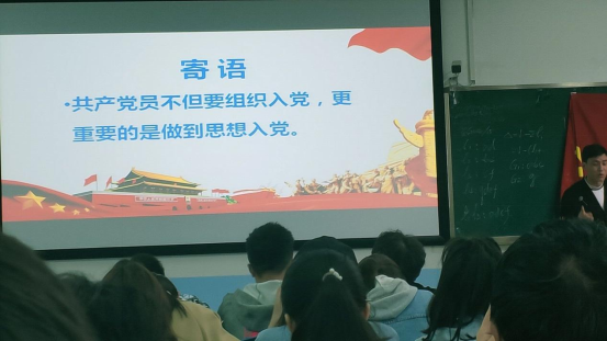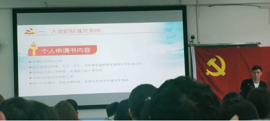 文毅老师还结合了我院的实际情况,向大家详细介绍了成为一名党员的条件。其中,年满18周岁、承认党的纲领和章程、执行党的决议并按期缴纳党费是最基本的条件。此外,入党积极分子还需要努力提高自己的思想觉悟,按时向组织提交思想汇报;在校期间未受处分批评;无挂科和重修情况;学习目标明确,态度端正,必修加权成绩应在专业前50%;积极参加组织集体活动;青年大学习达标100%;同等条件下,活动院级奖励荣誉及以上者优先。而要进一步成为发展对象则需经过党组织一年以上的培养教育和考察,同时也要听取党小组,党员和群众的意见,在支部委员会讨论后确定发展对象人选。在成为发展对象一段时间后召开发展大会,大会上发展对象应汇报个人情况,由介绍人介绍相关情况并表明意见,后面再由支部报告对发展对象的考察情况,接着再参会党员的充分讨论下做出决议,最后由发展对象表态。在成为预备党员后即被编入党支部,预备党员进行入党宣誓,接着继续进行一年以上的考察,考察完成后预备党员可提交转正申请,最后在召开党员转正大会和上级党委批准后将材料存档转为正式党员。