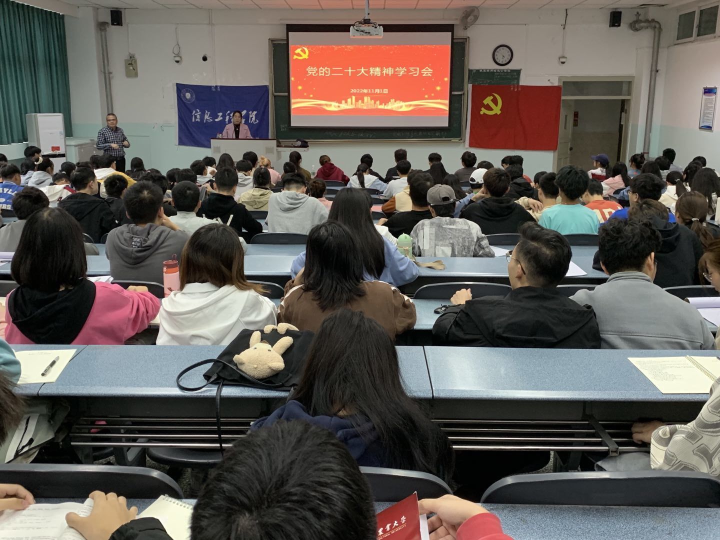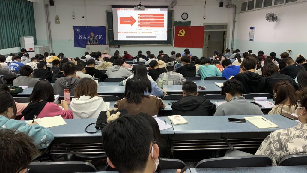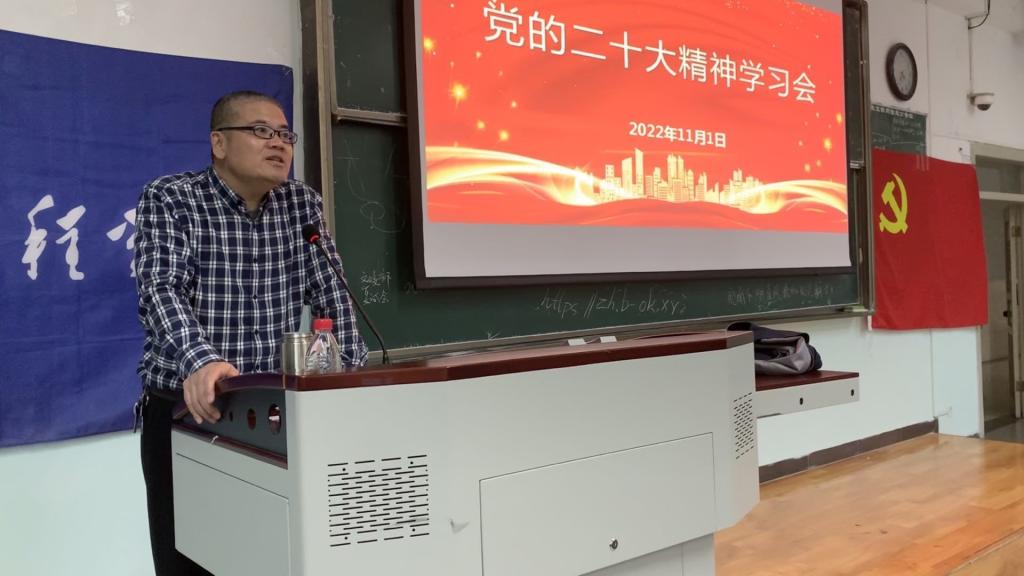 2022年11月1日下午16:30,学院在十教A-401举办党的二十大精神学习会,由学院党委书记王中成作专题讲授。学院2022年秋季学期入党积极分子培训班和第六期青马班全体学员参会。