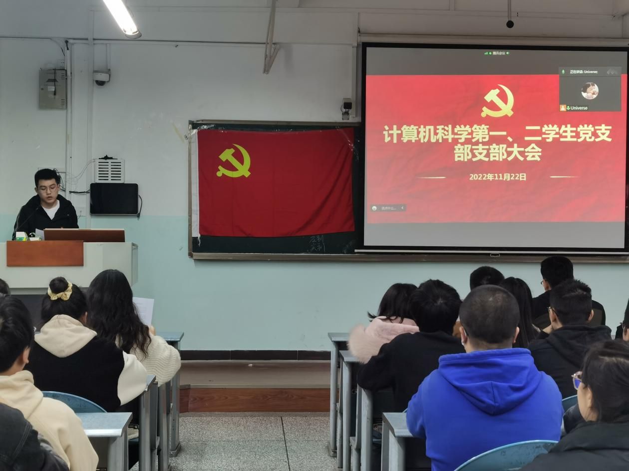 2022年11月22日下午,信息工程学院计算机科学第一、二学生党支部在十教A410和十教A409教室组织召开了党支部支部大会。由全体党员、预备党员、发展对象参加。本次会议由倪申武同志主持。