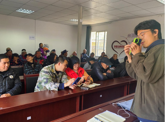 此外,为解决中老年村民“用手机难”的问题,提升村民的信息化素养,学院研究生党支部书记张博达同学为村民们作了“智能手机使用”的公益培训,通过现场演示介绍微信、支付宝、网购、视频连线、网上挂号等常用重要功能,帮助他们跨越数字鸿沟,融入数字时代,更好地享受智能生活带来的便捷。