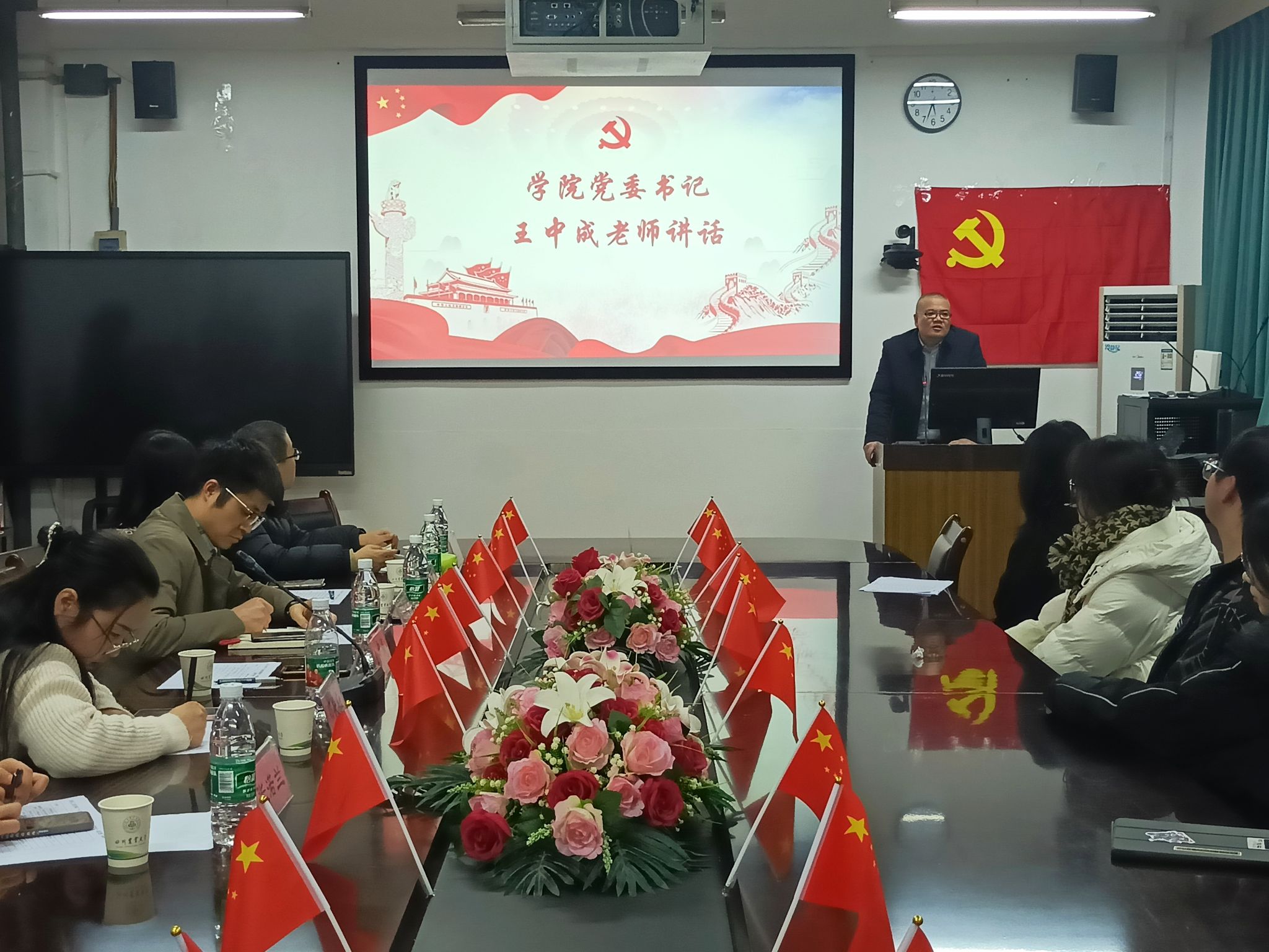 院党委书记王中成老师发表讲话,他对同学们的表现给予了高度的肯定,同时也对不足之处提出了改进意见,更从思想、工作和学习等方面对同学们提出了要求,希望每一位获得学院“十佳新思想新青年”荣誉称号的同学在今后都能发挥先锋模范带头作用,做名副其实的新时代好青年。