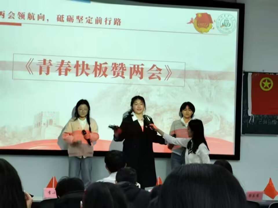 在两会专题部分,小班成员带来的《青春快板赞两会》节目将活动推向高潮,以新颖的形式聚焦两会热点,赢得阵阵掌声。