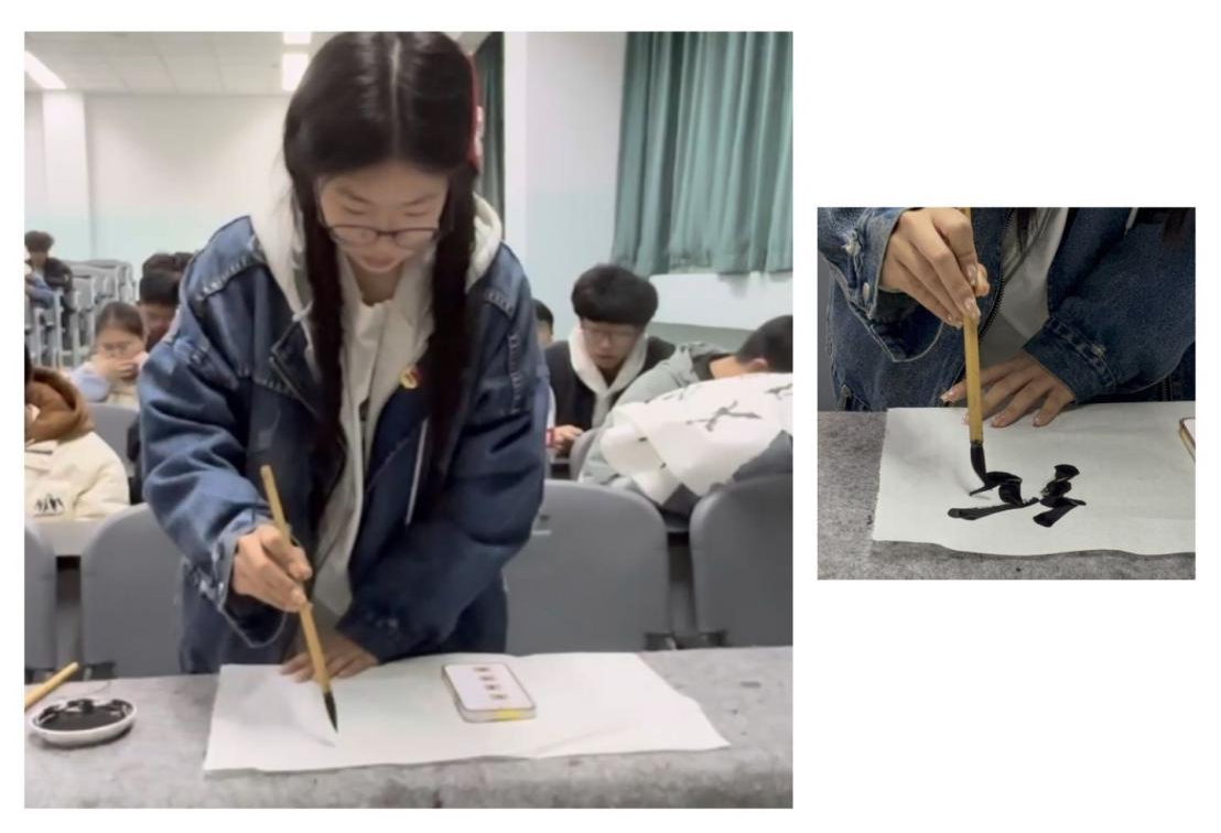 图三小班同学进行书法展示