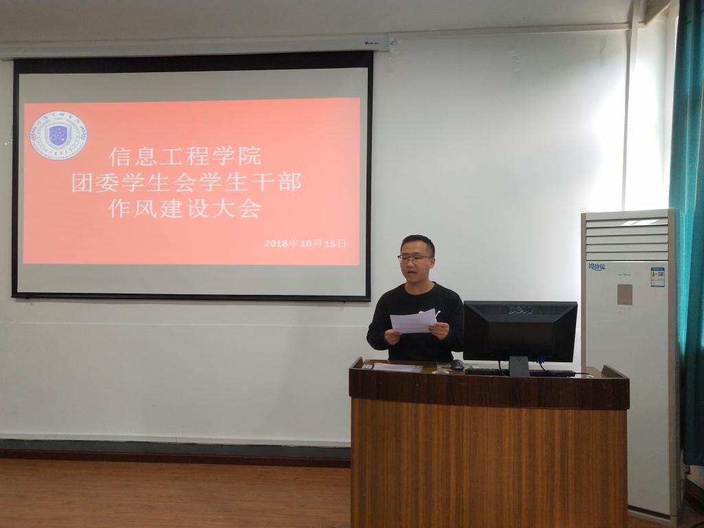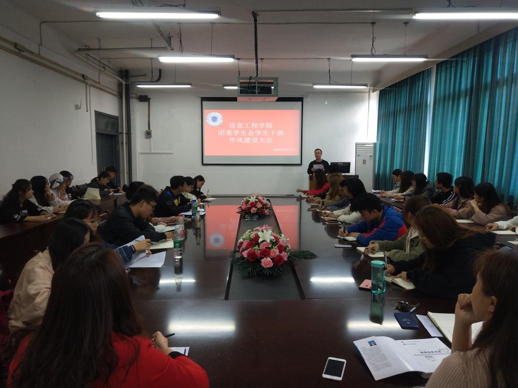 近期,国内部分高校学生组织暴露出“干部思想不正,官本主义突出”等各级学生组织干部作风问题。学院对此高度重视,为对学生会干部思想作风问题有效遏制、防微杜渐,10月15日中午12:30,信息工程学院团干例会暨团委学生会干部作风建设大会在四教210举行,全体辅导员老师、团委学生会主席团成员,以及各部门主干人员参加本次大会。