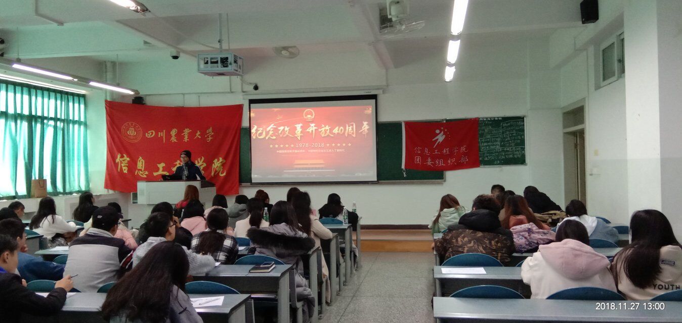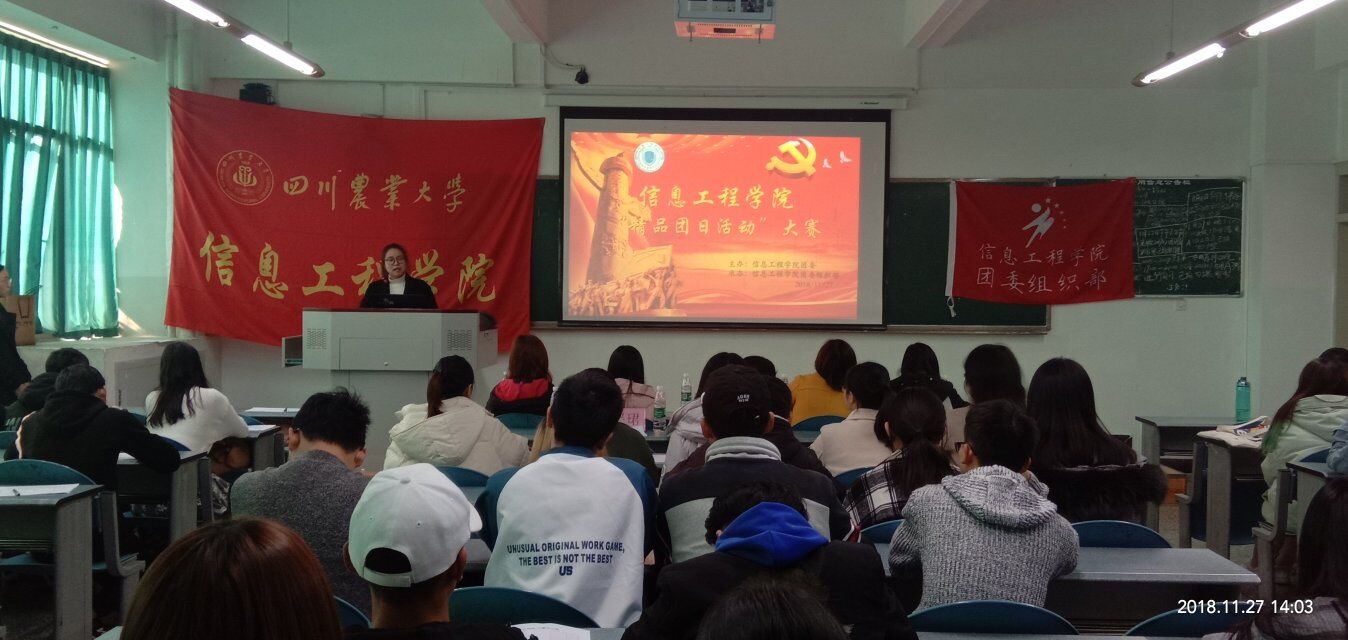2018年11月27日12:40,信息工程学院首届“精品团日活动”大赛最终评选在育新楼A310举行。本次评选由团委组织部部长张倩和副部长黄敬程主持,学院党委办公室副主任、院团委副书记邓秋红老师、院党委办公室尹华祺老师、团委学生会主席团成员、2016级团支部代表、学院各部门代表作为评委参与此次大会。