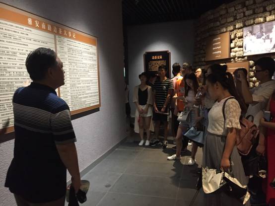 之后,在雅安市藏茶商会黄秘书长的带领下,我们来到了藏茶和汉文化博物院,感受藏茶的魅力,了解藏茶的生产工序以及茶文化。黄秘书长讲解到,制茶流程有着杀青、蒸茶等步骤,有着5大工序,52道工艺,是世界上茶叶制造工具最多最繁杂的茶,有着很多功效,此外,边茶的运输也是十分艰苦,是人工背运运输,送到西藏,为藏区人民带来茶叶,而茶马古道也由此而来。最后,黄秘书长带领我们来到汉文化博物馆,详细介绍了在雅安出土的石狮和古墓等,以及他们背后的故事。