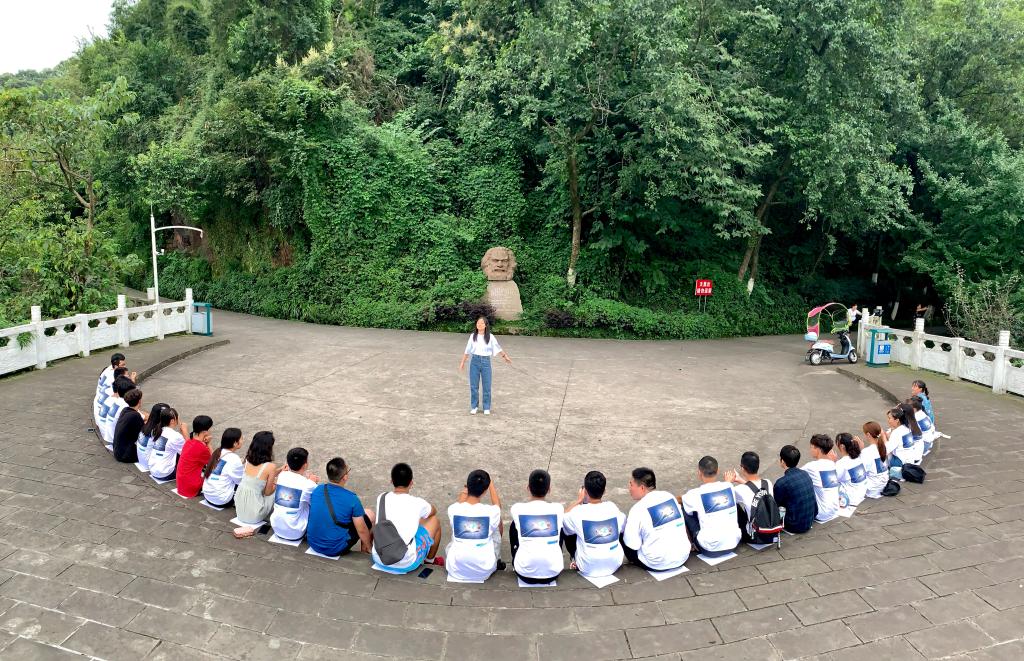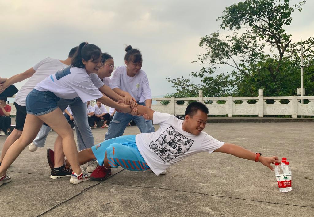 8月30日下午,信息工程学院2019级计算机科学与技术(教育)1班新生身着自己设计的班服在“老板山”观景台开展“素质拓展建班风 打造班级凝聚力”的主题班会。班主任文老师通过拓展项目“你熟我知”和“合力取水”让同学们很快化解了初识的尴尬,在团队配合中快速熟悉彼此,完成了项目任务。小班同学称:“以素质拓展开展班会,比较新奇,我从来没体验过这种形式的班会,素质拓展不仅拓展了我们友谊、还拓展了我学习的动力”。(图 文:文毅)