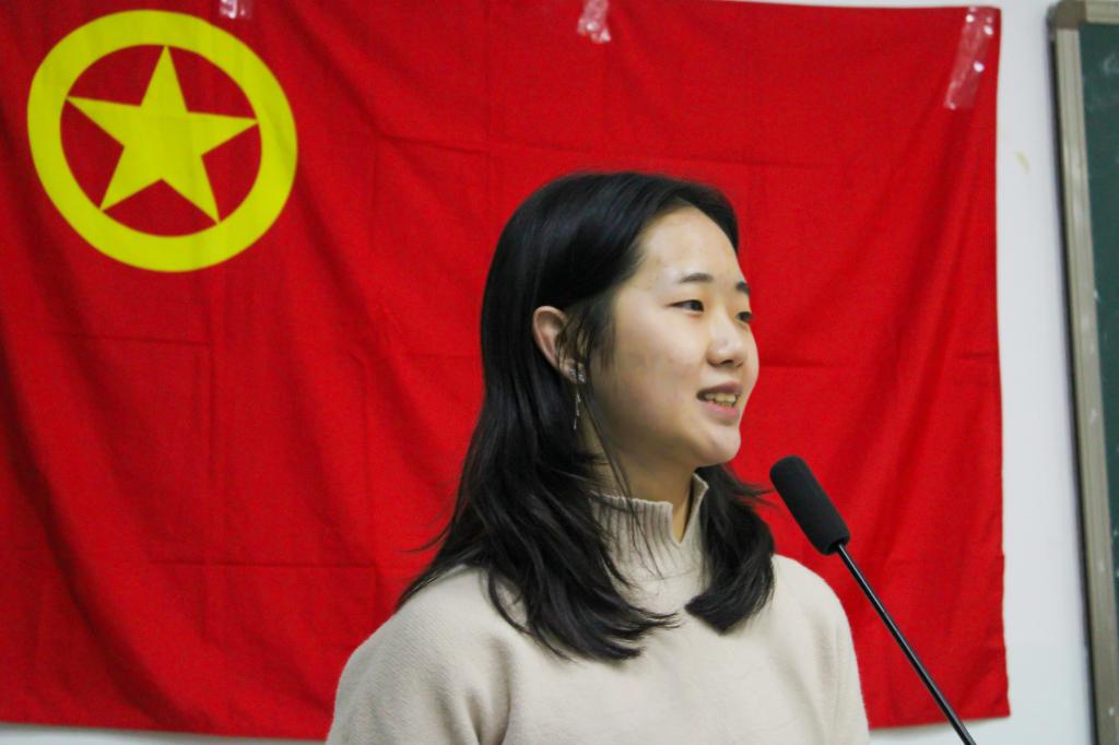 康华首先展示了志愿活动的照片,并向在场同学解释了何为志愿精神。她谈到,志愿公益需要导向,在做志愿公益活动的同时奉献自己、团结友爱,互帮互助、共同进步。对于为何要弘扬志愿精神,康华进行了阐述。她强调,培养志愿精神更多需要的是在奉献中进步,通过服务别人来传递正能量和一种积极的态度,从而获得幸福感。最后,她与在座的同学共勉,希望大家传承志愿精神,在奉献中提升自己。