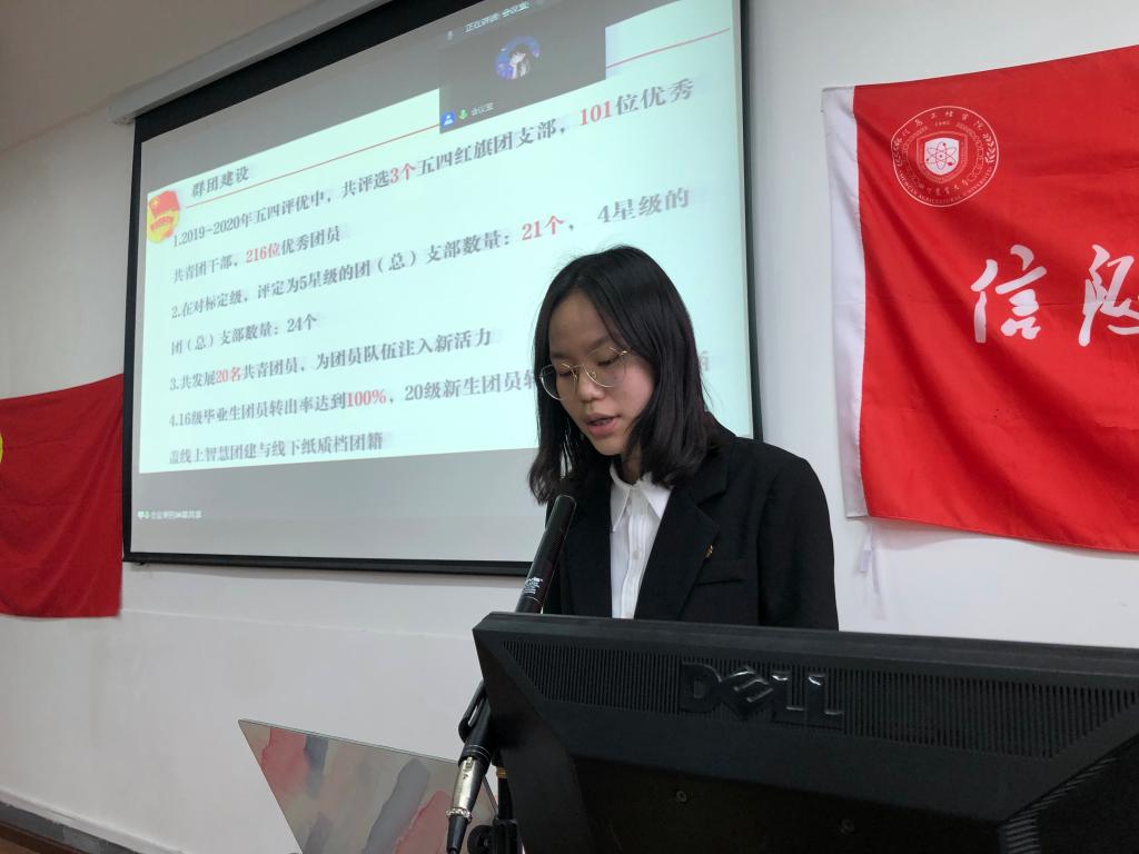 会上,第七届团委学生会李鸿翔、范芸菲、李自等九名主席团成员紧紧围绕2020年度学生工作中心思想,总结了个人和分管部门在疫情防控、思想引领、实践创新、学风建设、权益服务、舆情防范、组织提升、团干部培养等方面协助团委老师开展的一系列卓有成效的活动和工作,对2021年的工作进行了规划。其中,李自的“凝聚奋进新时代的新风力量,弘扬文明实践志愿服务精神”主题汇报,思路清晰、特色突出;范芸菲谈到,为喜迎建党100周年,将2021年思想建设的主题确定为“聚焦思想引领,党旗所指,团旗所向”,打造“团”字号特色阵地和“青”字号育人功能,让人印象深刻。
