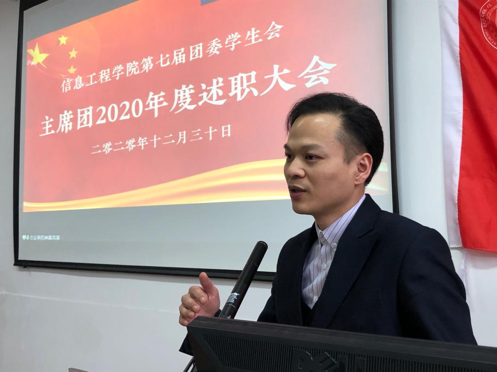 12月30日中午12:30,我院在共学楼210会议室同步线上线下召开第七届团委学生会主席团述职报告会。全体辅导员、团学主干、各部门成员及各小班班长、团支书共200余人参与会议。会议由团委学生兼职副书记范芸菲主持。