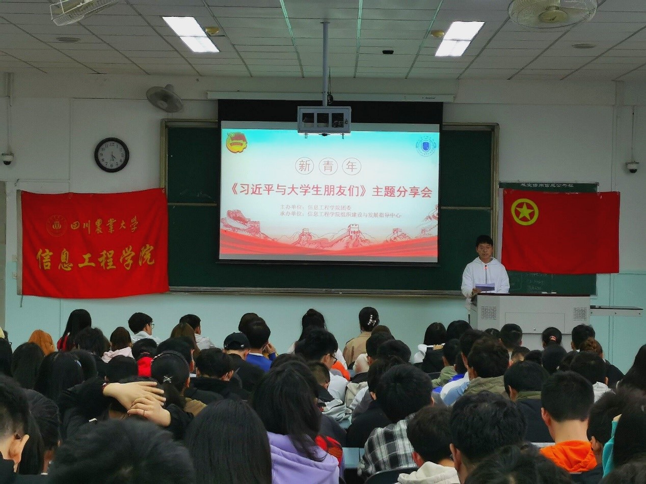 活动伊始,主持人潘远东介绍了此次分享会的背景,《习近平与大学生朋友们》一书中承载了习近平总书记对大学生的关怀与期许,希望更多的大学生能走入基层,从实践出发,“学会自讨苦吃”。三位优秀的寒假社会实践代表在阅读《习近平与大学生朋友们》之后,响应了习近平总书记的号召,将他们自身的阅读感悟与社会实践结合起来,为在场学员做了交流分享。以家人为榜样,怀拳拳赤子心,越数万里之长途,赴心系地,卡口站岗,抗击大连疫情,慰问困难家庭,是优秀个人韩姝同学对习近平总书记“要有牺牲精神、奉献精神”之言的践行;入基层,观世态、传思想、以伏案钻研之态,躬身实践,是李思灼同学的所在的“红砖团队”对习近平总书记“年轻人就要自找苦吃”之言的践行;舍“不知有汉,无论魏晋”的桃源人,择有担当、有作为、有品质、有修养的大学生,观红色旧址,访优秀党员是苏诗琪的所在的“新思想青年团队”对习近平总书记“要做‘六有’大学生”之言的践行。此川农学子,风华正茂,以拳拳之心,领信工风骚!