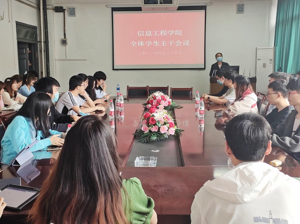 4月25日中午12:40,我院于四教210开展2021-2022(下)第三次学生组织主干例会,全体辅导员老师、主席团成员,以及全体学生主干到场。会议由主席团成员杨若云主持。