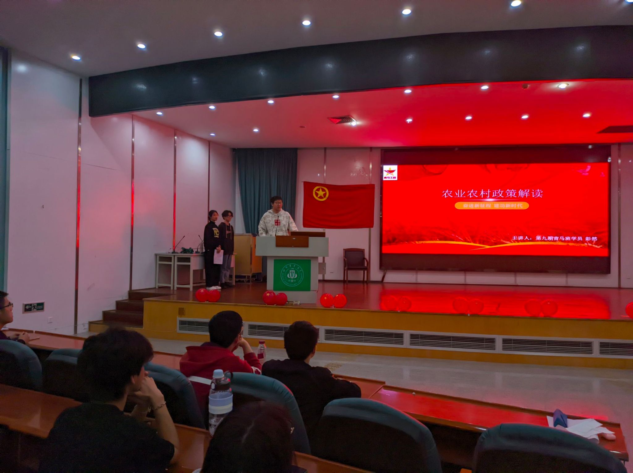 “只有通过我们自己不懈地努力,才能够搭建通往胜利的道路。”青马班成员彭然师兄给同学们进行了农业农村政策解读,结合我校情况,鼓励同学们扎实基本功,发挥农学特色,努力投身于乡村振兴之路。