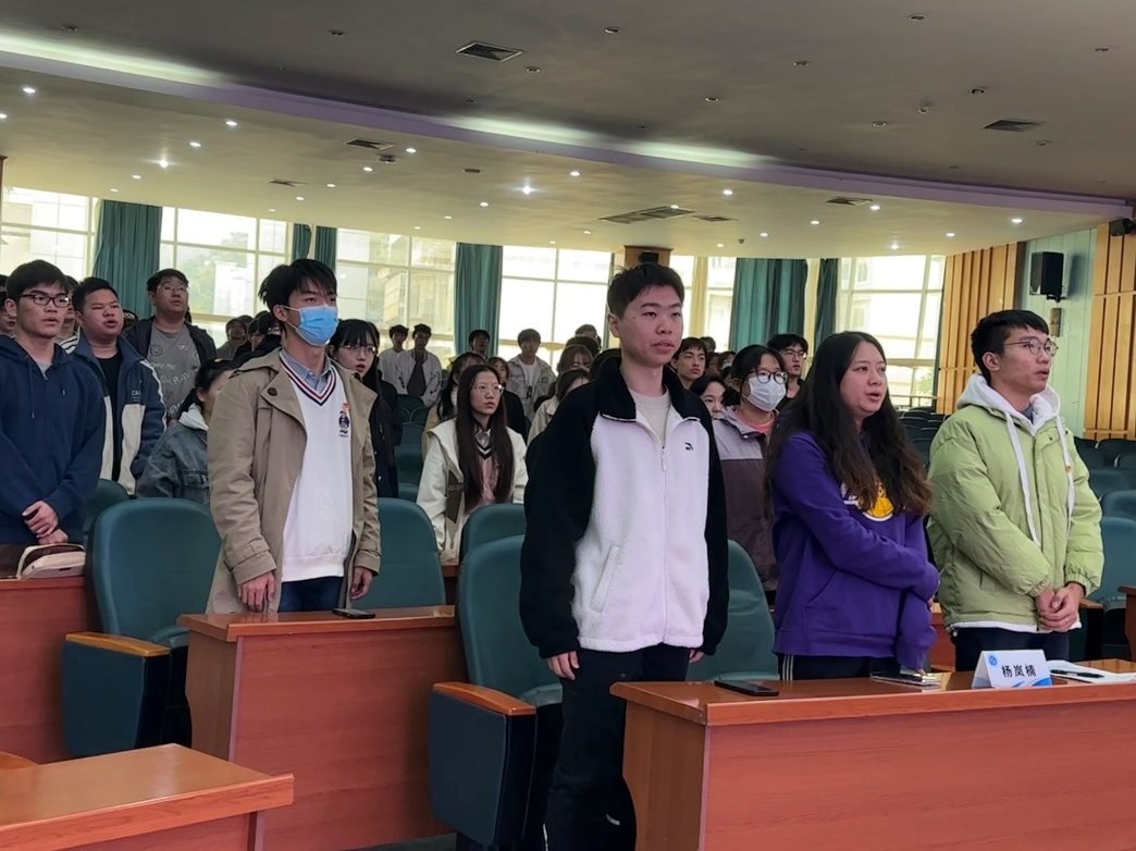 为贯彻落实《共青团中央关于面向广大团员和青年开展学习贯彻习近平新时代中国特色社会主义思想主题教育的通知》相关要求,动员引领广大团员和青年在理论学习和实践体验中不断铸牢对党忠诚、坚定理想信念、发扬斗争精神、勇于挺膺担当的目标任务,11月19日,由理学院团委直属流动团支部、信息工程学院团委直属流动团支部、应用化学202204班、化学202203班、化学202302班、计算机202204班、大数据202204班、大数据202206班共同承办的“学思想,重实践,建新功”十一月主题班团活动在十教小礼堂顺利开展。