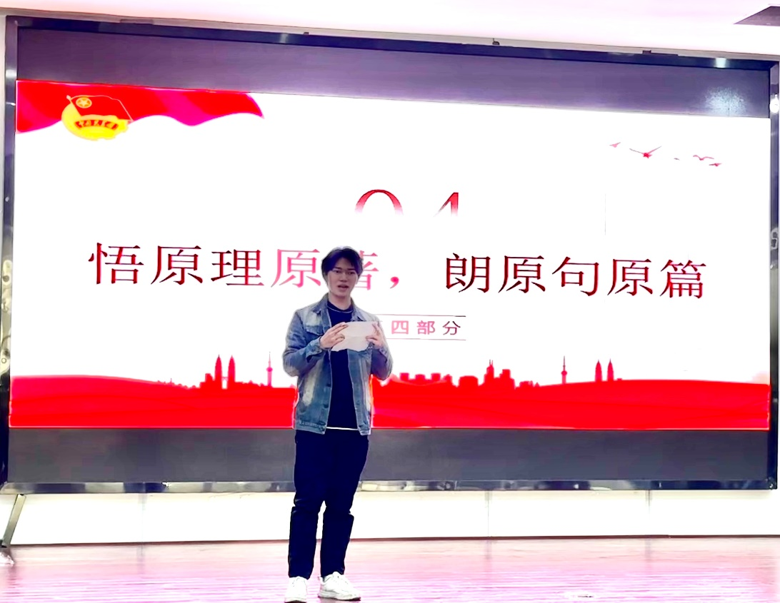 校青马班成员易家扬带领支部成员学习了中国共产党人的光辉事迹,号召作为新时代青年一份子的团员青年,用尽所学,努力成为中华民族伟大复兴的中坚力量。