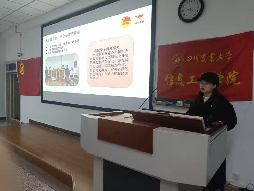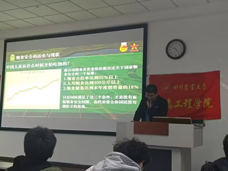 “建设新时代更高水平天府粮仓,有助于全面推进乡村振兴,加快建成农业强省,推进农业现代化。”第十期青马班成员邓骏以“稳抓粮食安全,共建天府粮仓”为题,讲述了建设新时代天府粮仓的价值与意义,同时各支部同学观看了“跟随总书记的足迹”的视频。邓俊呼吁到:“新时代乡村振兴的战鼓已经擂响,乡村振兴、建设美丽中国绝不是一句空口号。作为新时代的青年,我们应肩负起新时代的历史担当,切实为振兴乡村、建设社会主义现代化强国做出自己的贡献。”