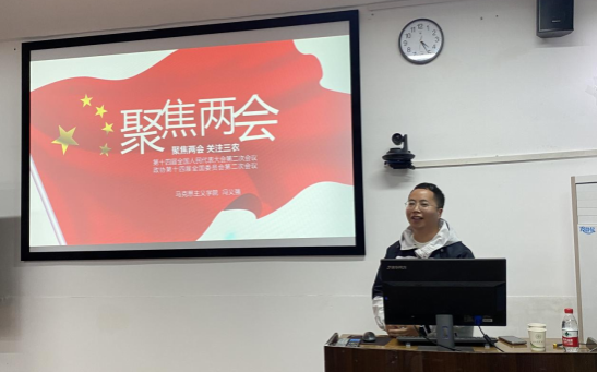 马克思主义学院冯义强老师以《聚焦两会 关注三农》为题,围绕“什么是两会”“回顾《政府工作报告》”以及“2024年两会中的‘三农’相关内容”为老师们作专题报告。