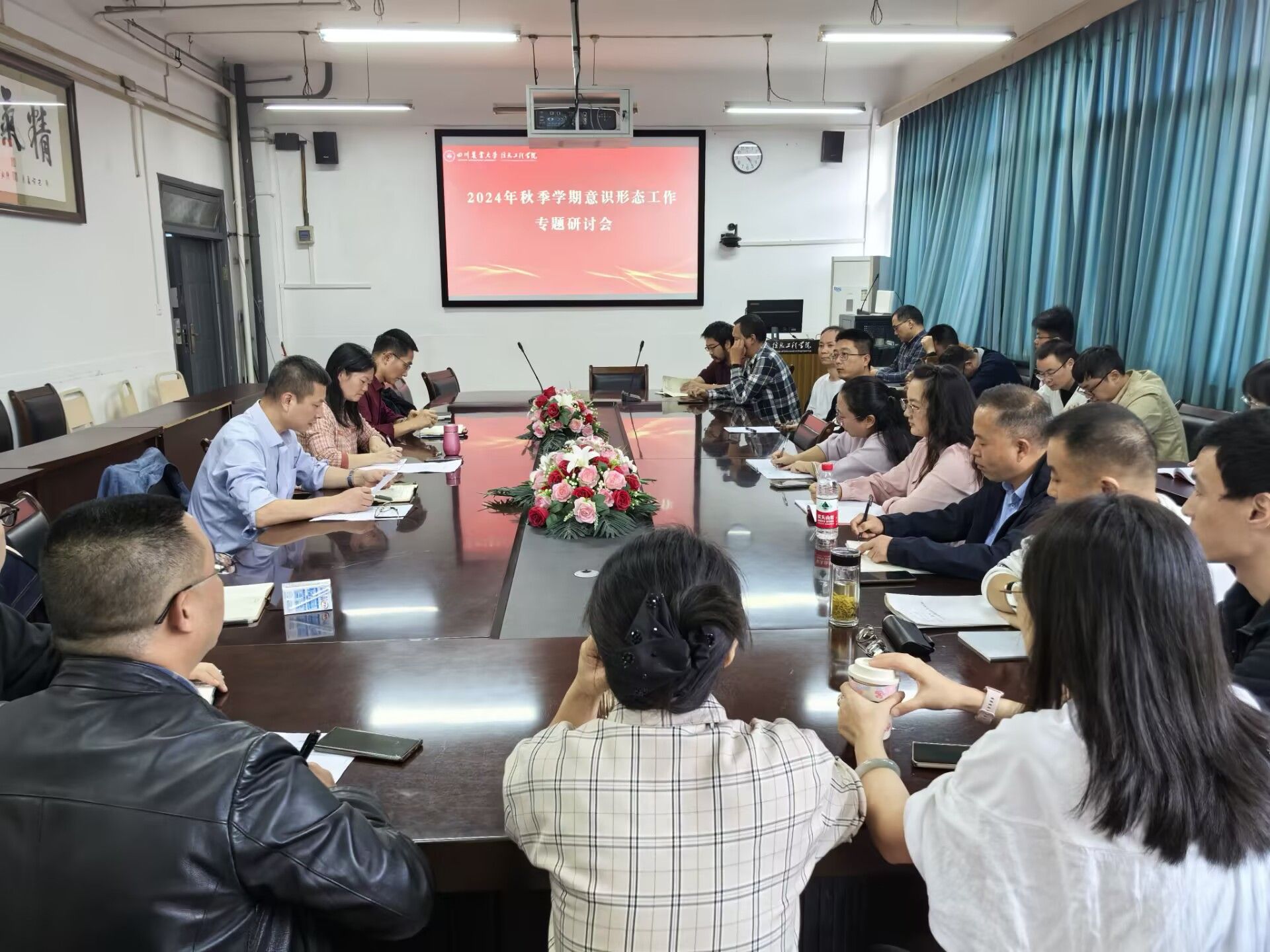10月15日下午16:20,学院在210会议室召开2024年秋季学期意识形态专题研讨会,旨在深入学习贯彻习近平总书记关于意识形态工作的重要讲话精神,进一步强化学院教师的意识形态素养,确保学院意识形态领域的安全稳定。院领导班子成员、各系室(中心)主任、全体教职员工参会。会议由院党委书记王中成主持。