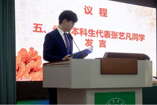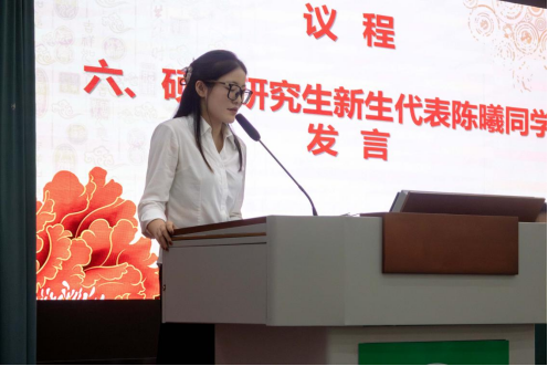 硕士研究生新生代表陈曦表示,研究生阶段是学术成长的关键转折期,要从知识的接受者转变为问题的探索者与创新者。她倡导新生恪守学术规范,将个人理想融入国家发展大局,积极服务乡村振兴战略。
