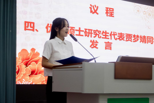 图5 优秀硕士研究生代表贾梦婧同学发言