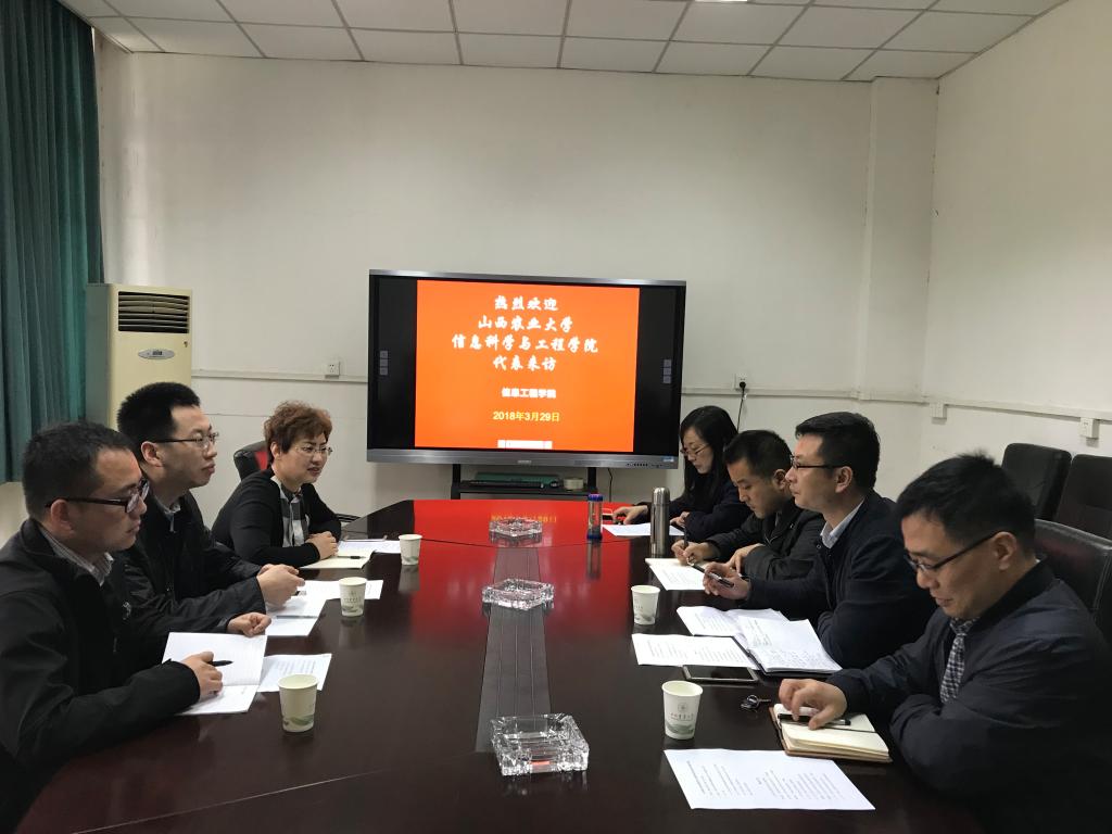 3月29日,山西农业大学信息科学与工程学院计算机科学与技术系主任李菊霞等一行三人来院访问交流。信息工程学院副院长李军、计算机科学与技术系主任、教师代表等与会座谈。会议由李军主持。