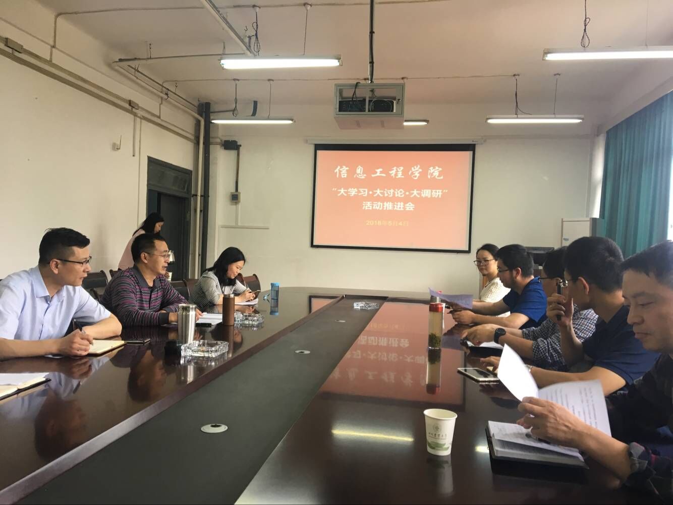 “学习就是要提高认识,坚定理想信念,大学习要学出自信和自觉;讨论就是要厘清迷雾,统一思想,大讨论要讨论出共识,形成合力;调研就是要发现问题,探索解决途径,大调研要调研出制约和影响学院改革发展的主要问题,形成解决方案,推进学院各项工作取得新进展和新成效”。5月4日下午,信息工程学院在工学楼二楼会议室召开“大学习、大讨论、大调研”活动推进会。学院领导班子成员、党委委员,各教工党支部书记、各系室主任和相关工作人员参加了会议。会议由学院党委书记张禧主持。