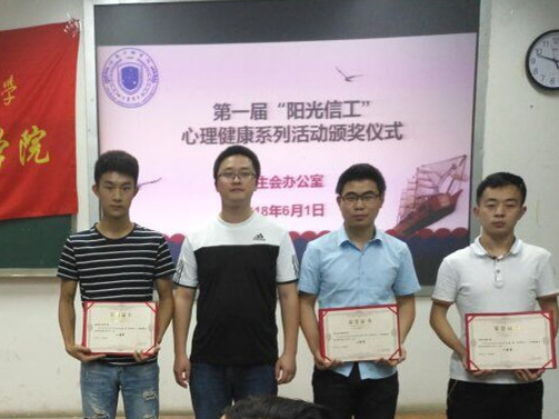 6月1日下午,信息工程学院首届“阳光信工”心理健康系列活动总结表彰会在10教b212举行,学院团委辅导员老师、第五届学生会主席团成员、各小班代表、获奖代表参会。
