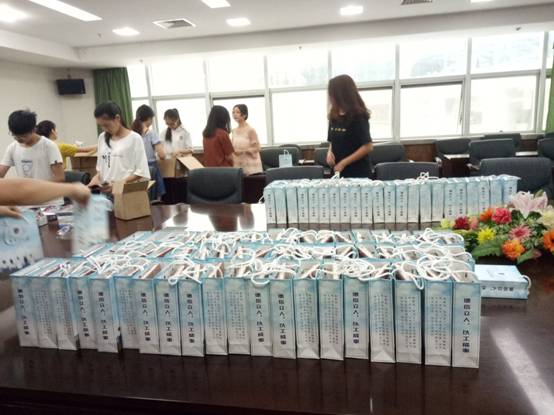 6月初,学院李军副院长在谈到毕业季活动时说到,“学生要离校了,学院应该给同学们准备点什么,留下些什么!”说干就干,接下来的日子,学院团委开始了紧张而忙碌的准备,“送学生点什么比较好呢?”“什么样的东西值得同学们收藏呢?”“经费怎么解决呢?”“什么样的礼物才有意义呢?”,带着这些思考,学院最终敲定了一套方案:一本印有院徽“LOGO”、扉页印有院长签名“寄语”的笔记本,一个精致的学院徽章,一张由全院老师拉着横幅拍的集体合照,横幅上“风里雨里,我们在信息工程学院等你”的文字内容醒目非常,配上一只毕业季特别定制的学院专属纸袋,纸袋侧面印有“德信立人,以工成事”八字院训,整套纪念品倾注了学院老师对毕业生满满的师生情谊和毕业祝福。活动得到了成都尚学堂科技有限公司、成都互联汇智科技有限公司(知了堂)的大力支持。