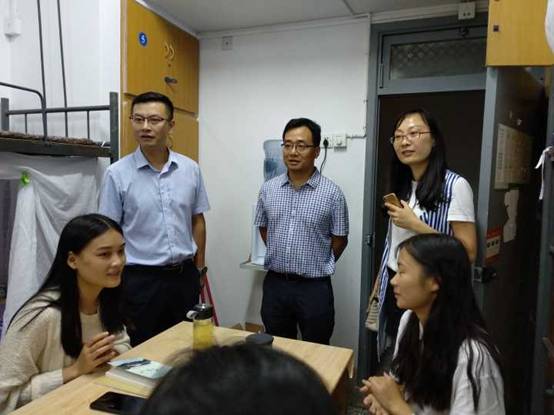 9月7日晚7:30,信息工程学院党委书记张禧教授、副院长穆炯教授、李军副教授,各系室主任,全体辅导员,教师代表,新生班主任及班主任助理分别下寝室慰问关怀2018级新生。