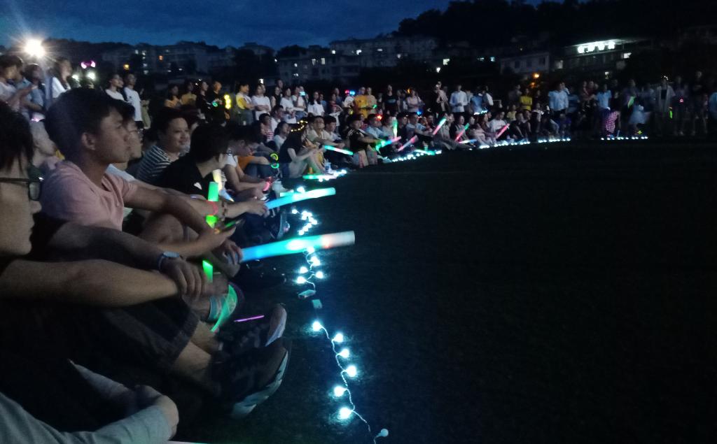 再见于金黄的夕阳下,相聚于渐凉的夏风中,曾分散天涯的学子,再度回到他们最初相识的地方,为曾经的似水流年送上最深情的演唱。在观众的期待中,信工院舞蹈团带来的一支热情洋溢的舞蹈拉开了晚会的序幕。或许是临别前不舍的伤感,或许是老友相见时勾起的微笑,由一圈观众所围成的小小舞台,却有着拉近人与人心灵的魔力。一首首经典曲目接连登场,一段段精彩舞蹈让人目不暇接,从《不要把我忘记》到《起风了》,依次登台的大四学长学姐将四年的回忆都注入进了他们的歌声,无论是“毕业快乐”的朴素问候,还是“愿你出走半生,归来仍是少年”的美好祝愿,都表达出他们真实的心意。由GD舞社带来的《shuffle》和KID舞社带来的《kill this love》也以精湛的舞技,为在场的各位献上了一场最为精彩的视觉盛宴。在渐暗的黄昏中,荧光棒的舞动随着热情的升腾化作了光的海洋,照亮了一方的夜空。