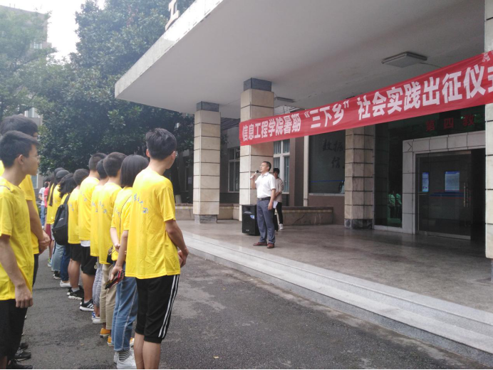 2019年6月27日下午14:30,信息工程学院团委在工学楼前开展2019年暑期社会实践出征仪式,打响了暑期社会实践的重要一枪,预示着学院2019年暑期社会实践全面启动。院党委书记张禧教授、副院长李军副教授、党委办公室主任黄锎靓老师及团委学生会主席团,2019年暑期社会实践团队队长、校级重点团队成员参与此次出征仪式。活动由学生实践与志愿服务中心承办。