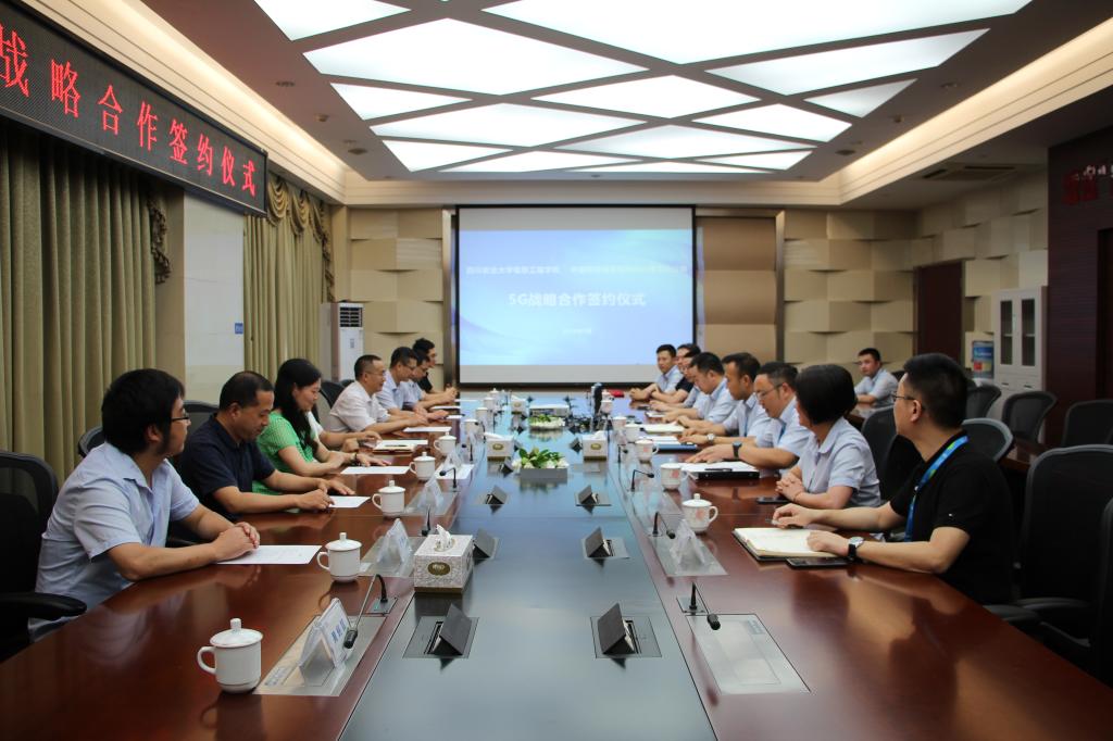 7月9日下午,太阳集团tyc86信息工程学院与中国移动通信集团四川雅安分公司在中移雅安分公司会议室签订《关于加快5G发展战略合作协议》。学院院长高雪松、党委书记张禧一行与雅安移动党委书记、总经理王颖杰、雅安移动党委委员、纪委书记、副总经理杨勇等出席签约仪式。