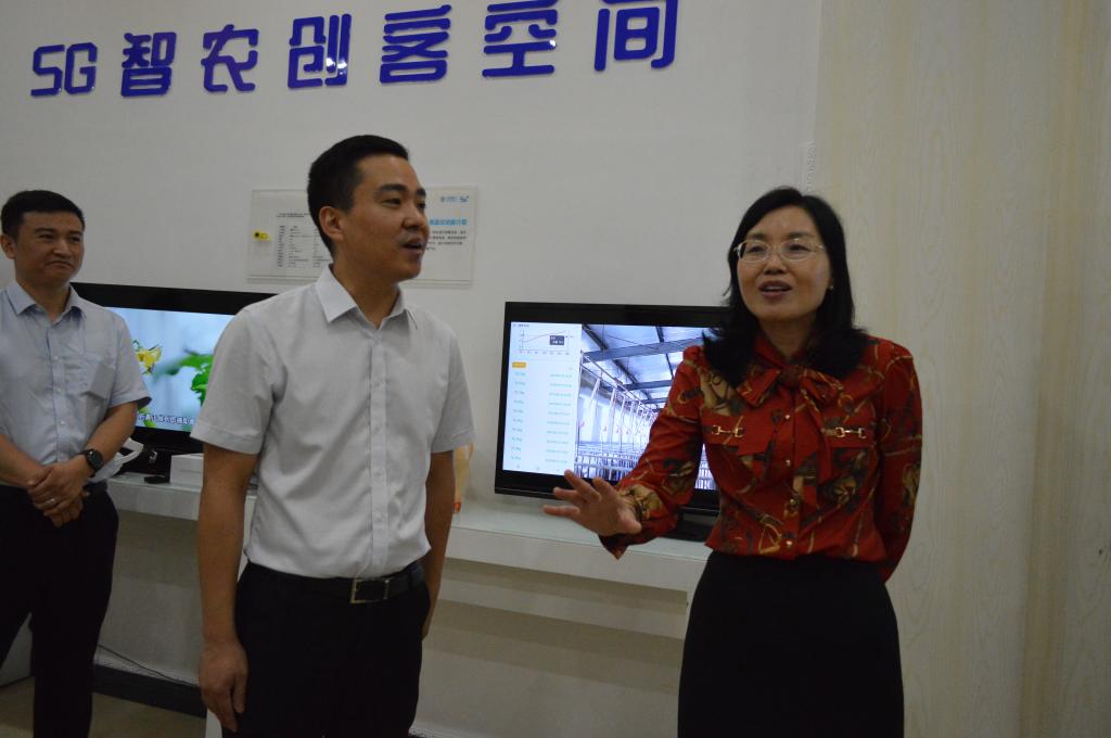高雪松院长向校党委书记庄天慧介绍5G智农创客空间