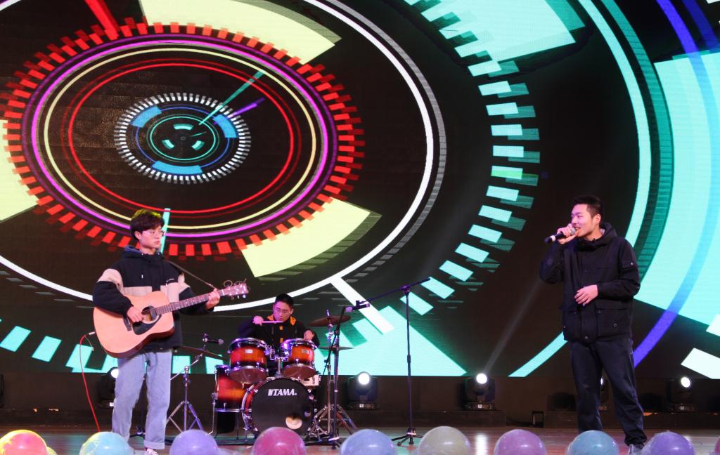 信息工程学院正在发展的势头上,计算机科学与技术、物联网等专业呈蓬勃之势,互相竞逐,在时代的浪潮中共同远航。由电声乐团带来的《那些失眠的夜与难以忘怀的事》,激情洋溢;“想看遍这世界,去最遥远的远方”,一首《你曾是少年》抒发了少年寻梦之旅上的种种烦恼,唱出了青年对于梦想的追寻和对未来的期待;舞蹈《LOVE SHOT》则紧跟时尚的步伐,混着时代的气息,展示了属于青年人的活力与激情。“关注微信上墙、扫码抽奖”,在主持人的带动下,随着“爱国者U盘”、“奥利奥零食大礼包”等奖品砸中幸运儿,各微信在抽奖墙上不断滚动,将晚会带入下一篇章。