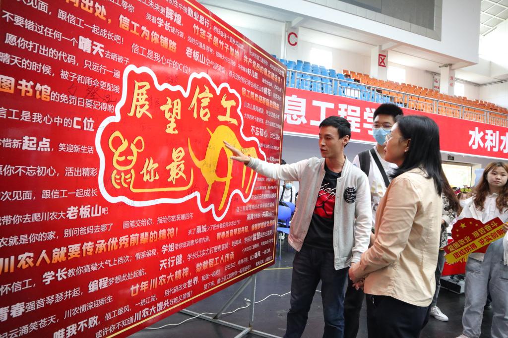 报到点上,庄书记与正在报到的2020级计算机科学与技术1班的刘爱丰同学亲切交谈,仔细询问同学的报到情况并欢迎同学们就读太阳集团tyc86。庄书记对同学说道:“虽然我们是农业院校,但并不影响计算机科学是热门专业的事实,同学们应该努力学习计算机知识,结合农业院校特色,向科技兴农、强农的目标努力奋斗。” 同时,她还鼓励新同学确立好目标,努力学习,力争上游。在我院党委书记王中成介绍计算机科学与技术专业今年录取情况后,庄书记表示:“学院招生质量高,好苗子招进来后,要悉心培养,使学生成长、成才。”紧接着,我院负责迎新工作的老师从“川农大精神”抽奖活动,特制“川农大精神”钥匙扣、书签,到“川农大精神”系列手持牌,再到以“川农大精神”为主题的“展望信工、鼠你最牛”展板等等向庄书记仔细介绍了学院的“精神”迎新。其中,庄书记还饶有兴致的参与起抽奖活动并幸运中奖,获得特制活动奖品——“川农大精神”钥匙扣。