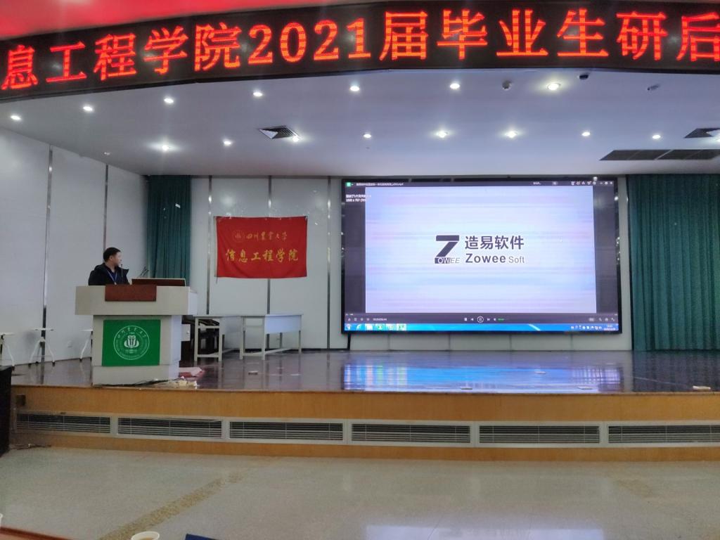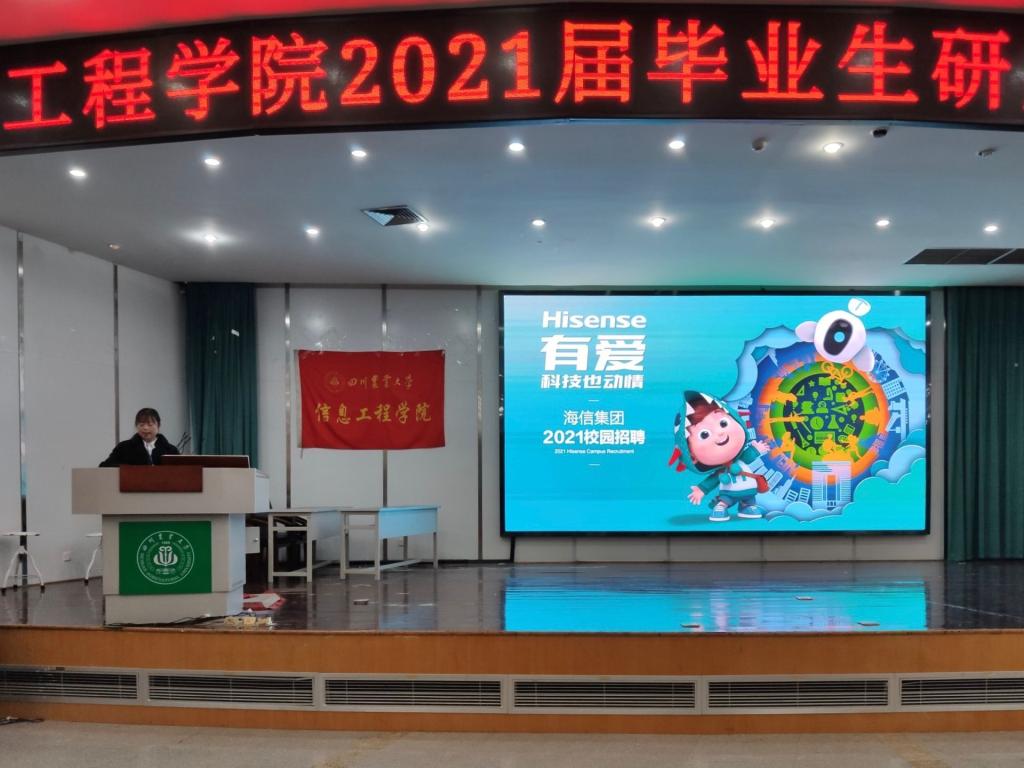 Valoroso(巴伦如梭)公司、海信集团中国区成都营销中心 、软通动力技术服务有限公司成都分公司 、成都思而科软件有限公司、成都造易软件有限责任公司、多益网络科技有限公司负责人,学院党委书记王中成,全体辅导员、21届毕业生班主任代表及398名在校毕业生参加了会议。