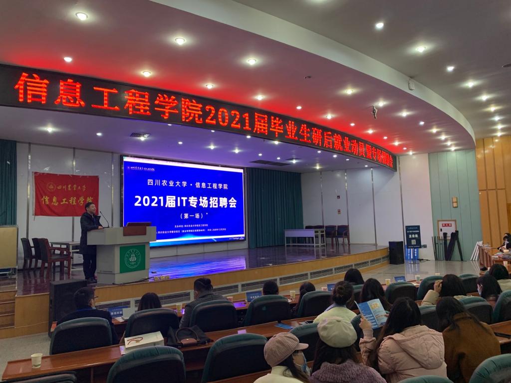 为贯彻落实近日召开的全国和全省高校毕业生就业工作视频会议精神,12月29日,由信息工程学院联合6家企业主办的2021届毕业生研究生考试后就业动员暨专场招聘会在10教小礼堂举行。