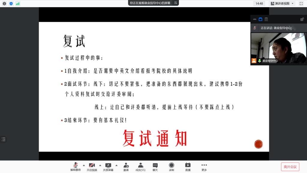 据悉,为推动2021届毕业生充分高质量就业,学院实施“一类一案”、“一生一策”精准帮扶就业服务,后续还将持续开展就业公益直播课系列活动,着力为广大毕业生办实事。【文/尹华祺 审/王中成】