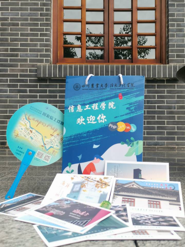 印有勤奋刻苦“码农”图案的礼品袋,蕴含了他们即将开启的“码农”人生;殷切的寄语和热忱的欢饮化成一句句精美的词句印在十款川农美景明信片上;一面印有卡通版川农地图的圆扇,一句“面向对象面向君,不负代码不负卿”,便又激起他们对科技未来的无限遐想,起到了良好的入学教育的效果。【文:向建桦、刘旻菲、王美玲 审:王中成】