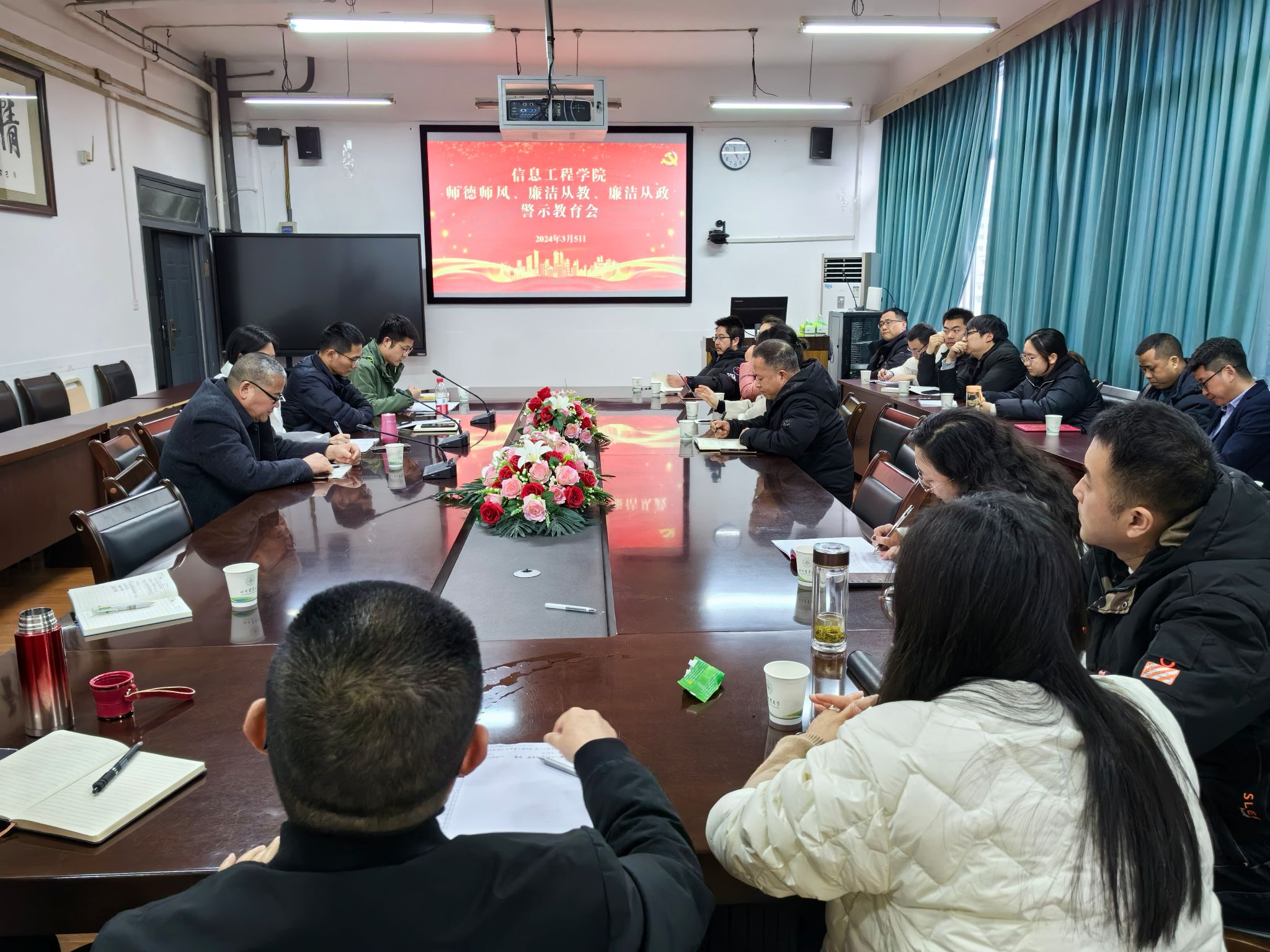 3月5日,学院在4教210会议室开展了师德师风暨廉洁从教从政教育会,全体教职工参会。会议由学院党委书记王中成主持。