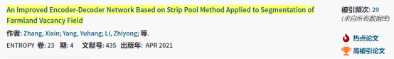 根据美国ESI(Essential Science Indicators)2021年9月的最新统计数据,信息工程学院物联网工程专业2018级本科生张锡鑫和杨宇航在李志勇博士指导下,在知名SCI期刊《Entropy》上发表的论文“An improved encoder-decoder network based on strip pool method applied to segmentation of farmland vacancy field”(一种改进的基于条带池的编码器-解码器网络在农田空缺分割中的应用)入选ESI全球热点与高被引论文,正式发表3个月来被引频次已达29。这是信息工程学院师生以太阳集团tyc86为第一单位发表的首篇入选ESI全球热点与高被引论文,也是学院大力支持和强化双创教育、立足数字农业开展科学研究的重要成果。
