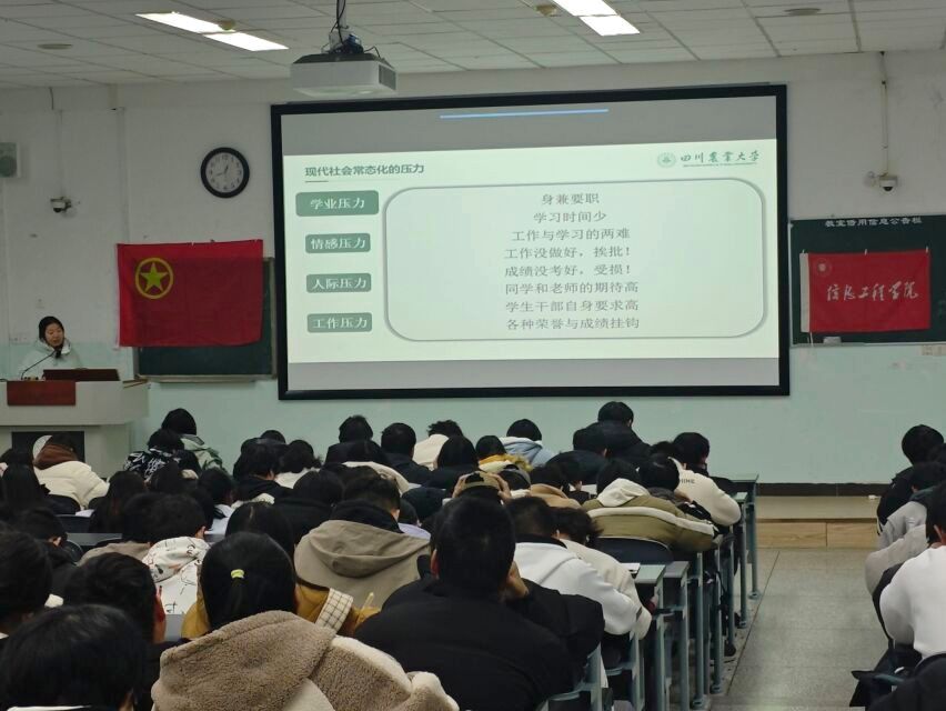 为了增强同学们管理情绪和应对压力的能力,12月18日中午,信息工程学院第八期团校第十次理论学习在10-A301举行,第十一届主席团成员张译丹受邀进行讲授,第八期团校全体成员共同参与。